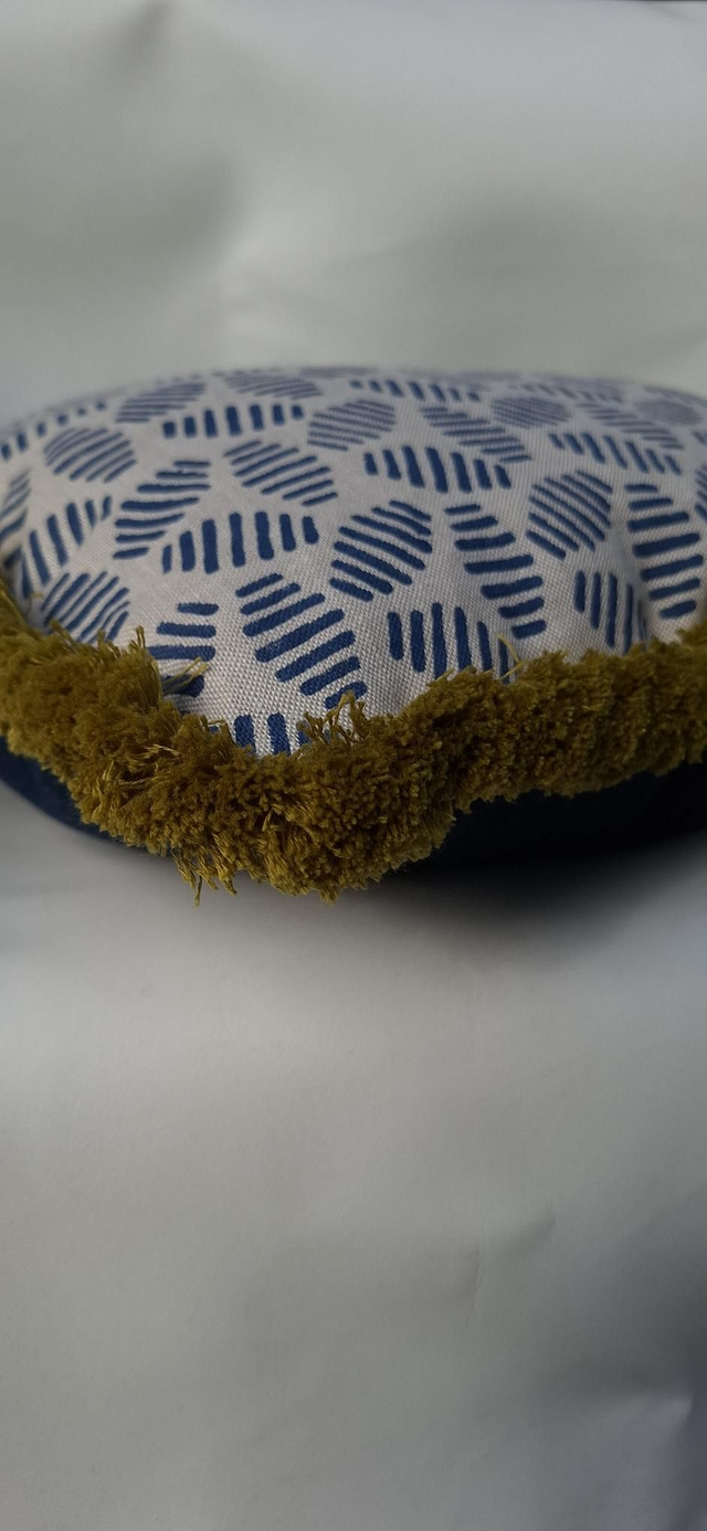 Harlequin's Calathea printed velvet circular cushion, plain orange reverse, with a thick cotton fringe 18" diameter - cover only