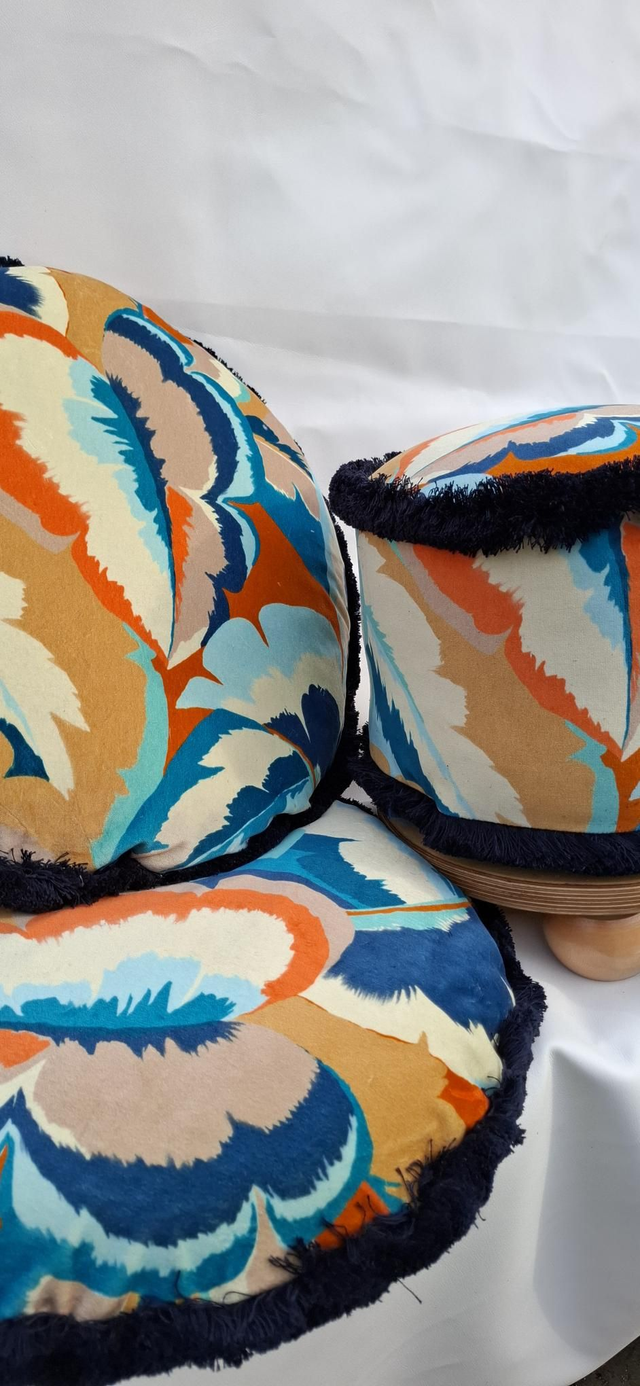 So called as the Pie Filling uses up scrap pieces of fabric, the Crust is a rolled wool and the Glaze is the brightly printed Calathea velvet.