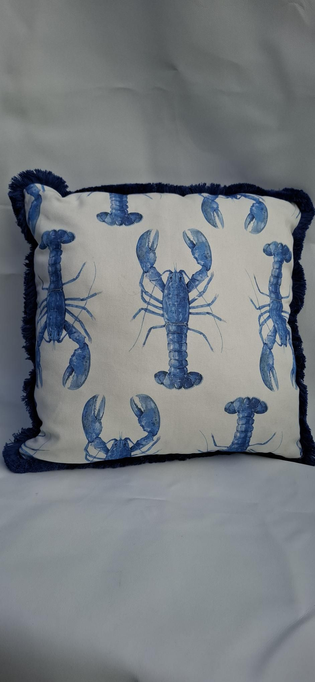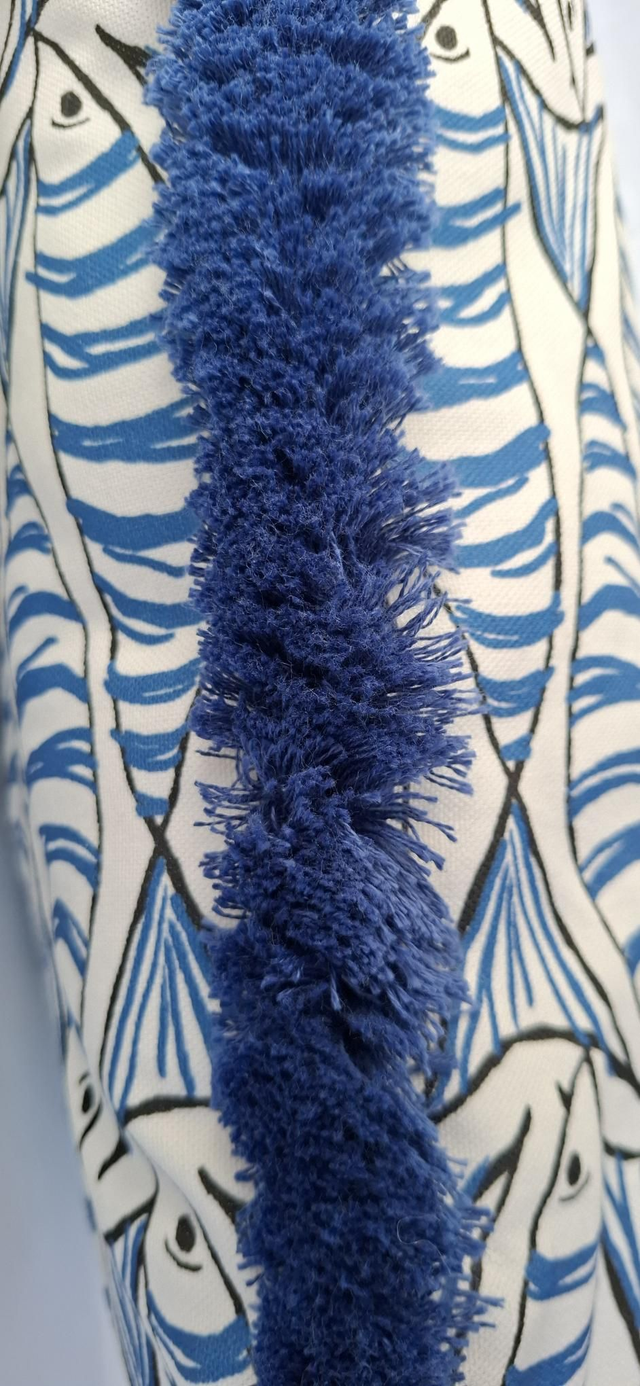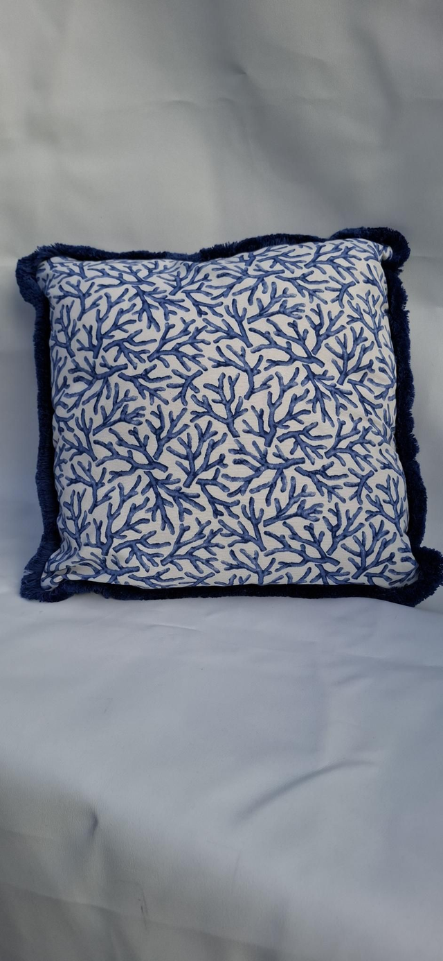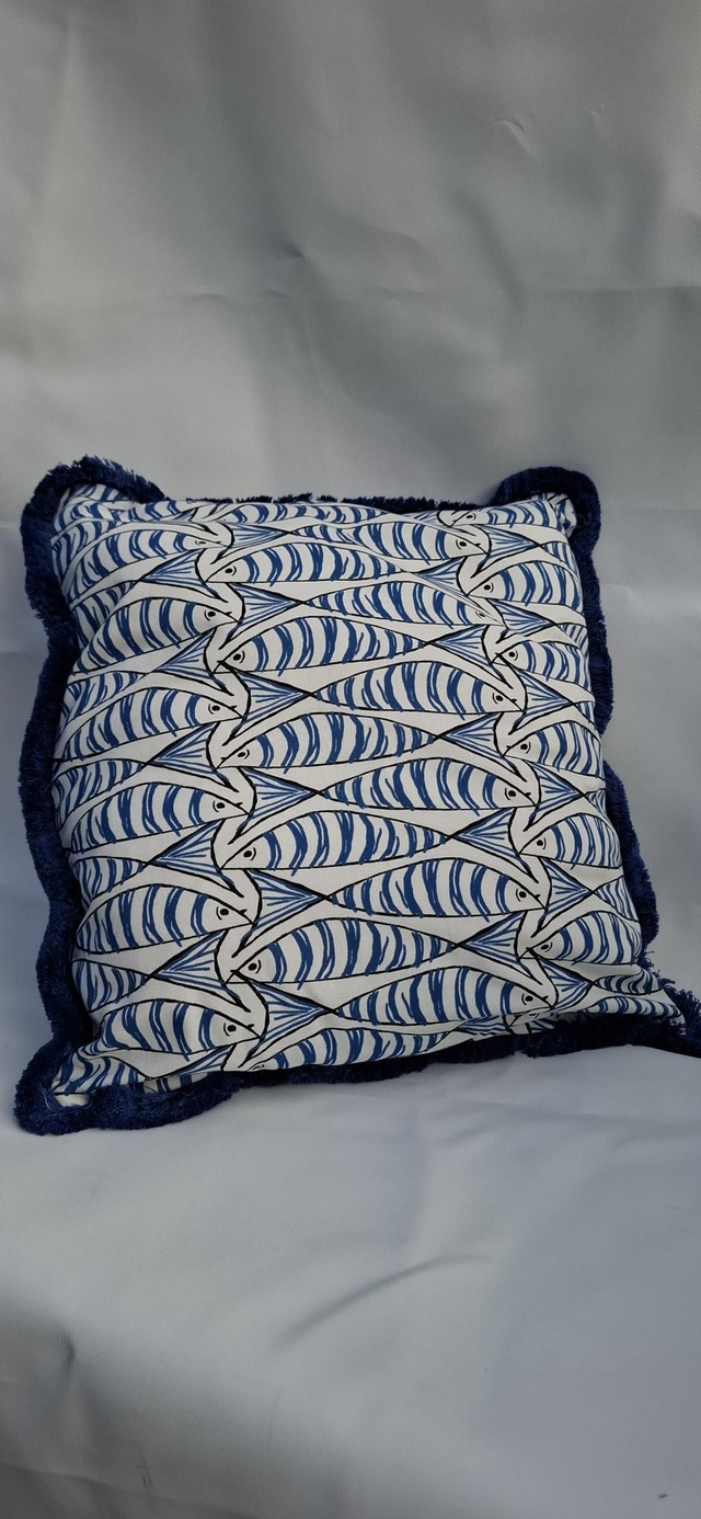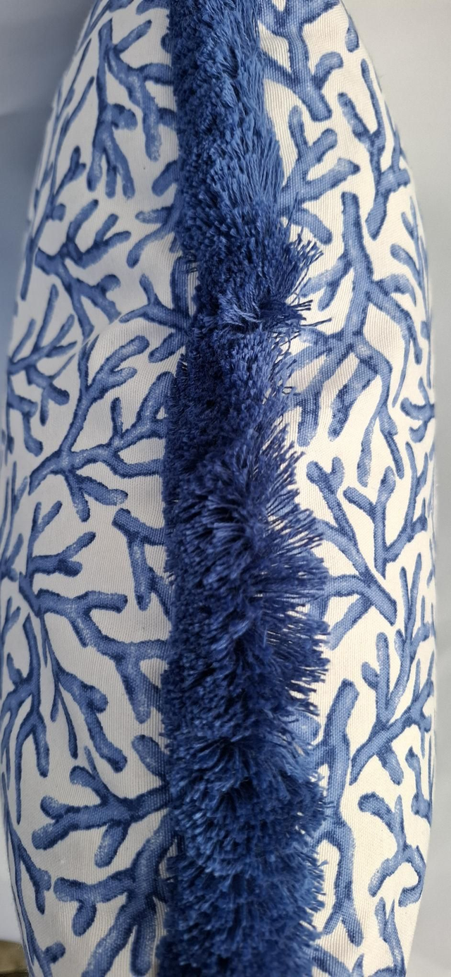 Seaside theme cushion cover, with thick cotton fringe and zip closure.